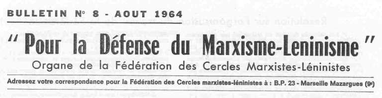EP fin novembre 2004 - L'HUMANITÉ ROUGE -Journal Communiste pour l'application en France du Marxisme-Léninisme et de la pensée-Maotsétoung- n°185 -du 19 avril au 3 mai 1973- "Il y a 10 ans <<les 25 points>> ou la ligne de démarcation entre marxisme-léninisme et révisionnisme moderne" -par Henri Jour- pages 10-11- "A propos de l'unification des marxistes-léninistes" page18 PROLETARIAT n°1 -Revue théorique et politique marxiste, léniniste et de la pensée - Maotsétoung -2è trimestre 1973 -Document d'Albanie (Radio Tirana) "Le PCMLF fête le 5è anniversaire de sa fondation" page 88. PROLETARIAT n°5 -Revue théorique et politique marxiste, léniniste et de la pensée - Maotsétoung -2è trimestre 1974 - -"Comment édifier le Parti ML - Création en France d'un véritable parti révolutionnaire du prolétariat" - pratique et expérience accumulée d'octobre 1963 au 12 juin 1968- par Gaston LESPOIR- page 22 .