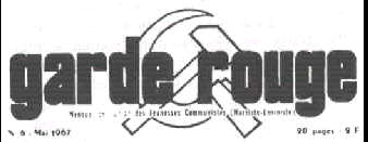 bourgeoisie. ..... La situation actuelle chez nous est différente : il est urgent et indispensable de forger l'outil de la Révolution, qui seul permettra d'instaurer la dictature du prolétariat, à savoir le PARTI MARXISTE-LENINISTE dont l'absence en ce moment comporte tant de conséquences négatives. Ce qui n'exclue nullement de savoir dégager à notre avantage militant tout le bénéfice capital de l'action impétueuse des gardes rouges qui s'inspirent de la pensée du Président MAO. Par exemple, ne serait-ce que pour faire de grands et sincères efforts de modestie et ne pas se croire d'infaillibles théoriciens !. " ..... Un peu plus loin, la